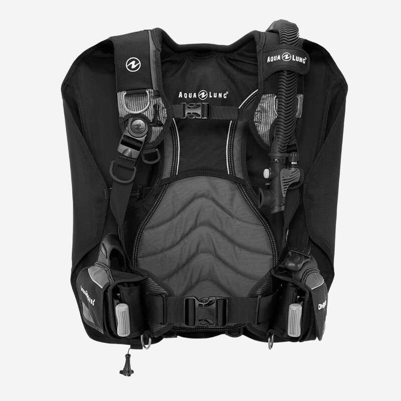 • Système de harnais Wrapture : Système de harnais Wrapture : des boucles d’épaule pivotantes brevetées et une plaque dorsale ultra fine offrent un confort inégalé et empêchent le gilet de remonter à la surface. Hors de l’eau, le système vous permet de vous tenir droit en gardant le cylindre près de votre centre de gravité et en transférant le poids sur vos hanches