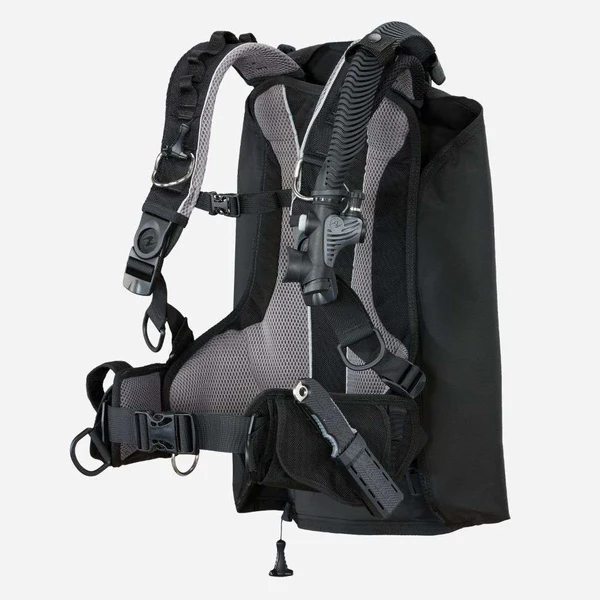 - Minimaliste, non minime La conception simple conserve les caractéristiques essentielles : poches, anneaux en D en acier inoxydable, attache pour octopus, point d’attache du couteau.